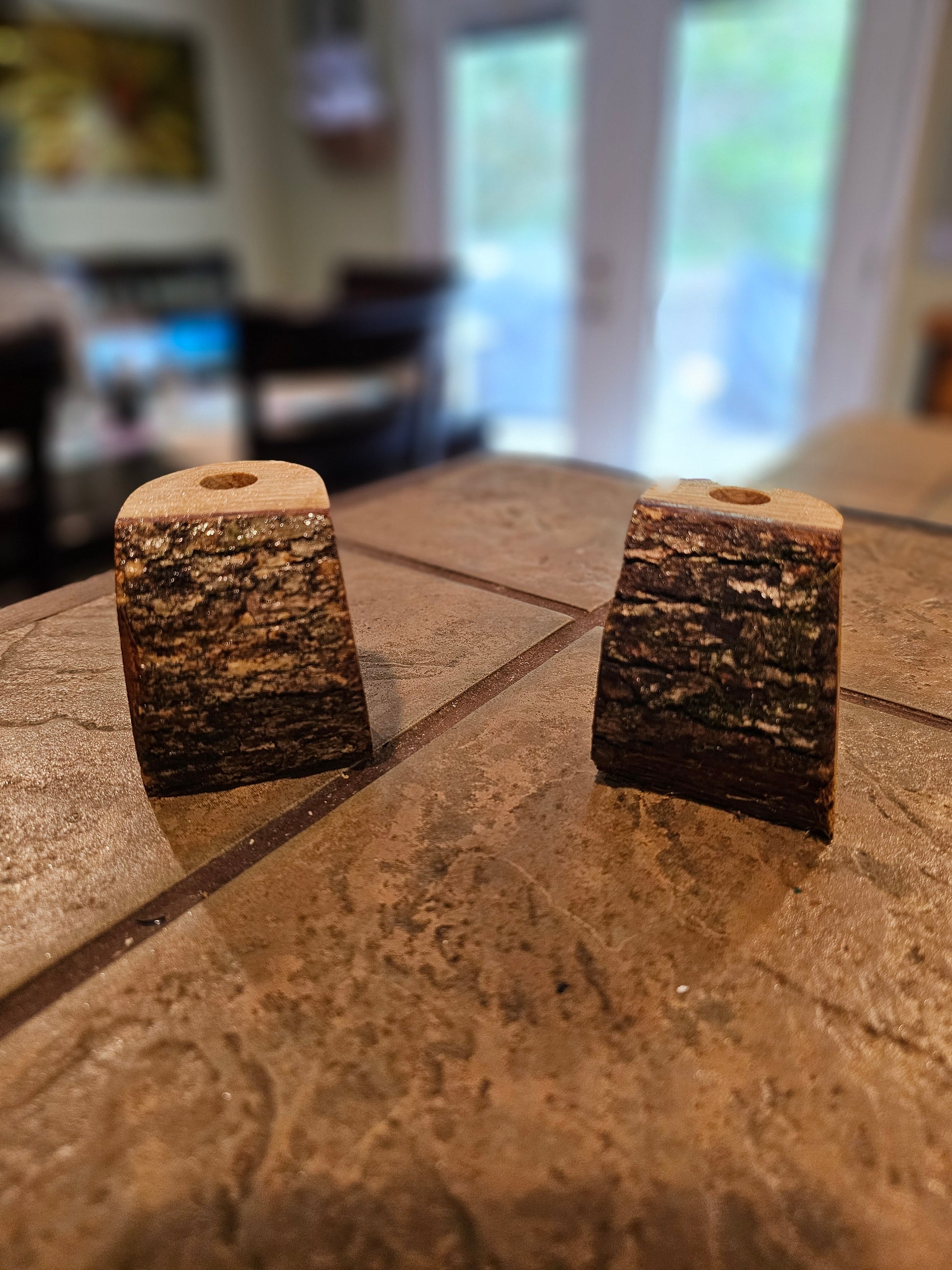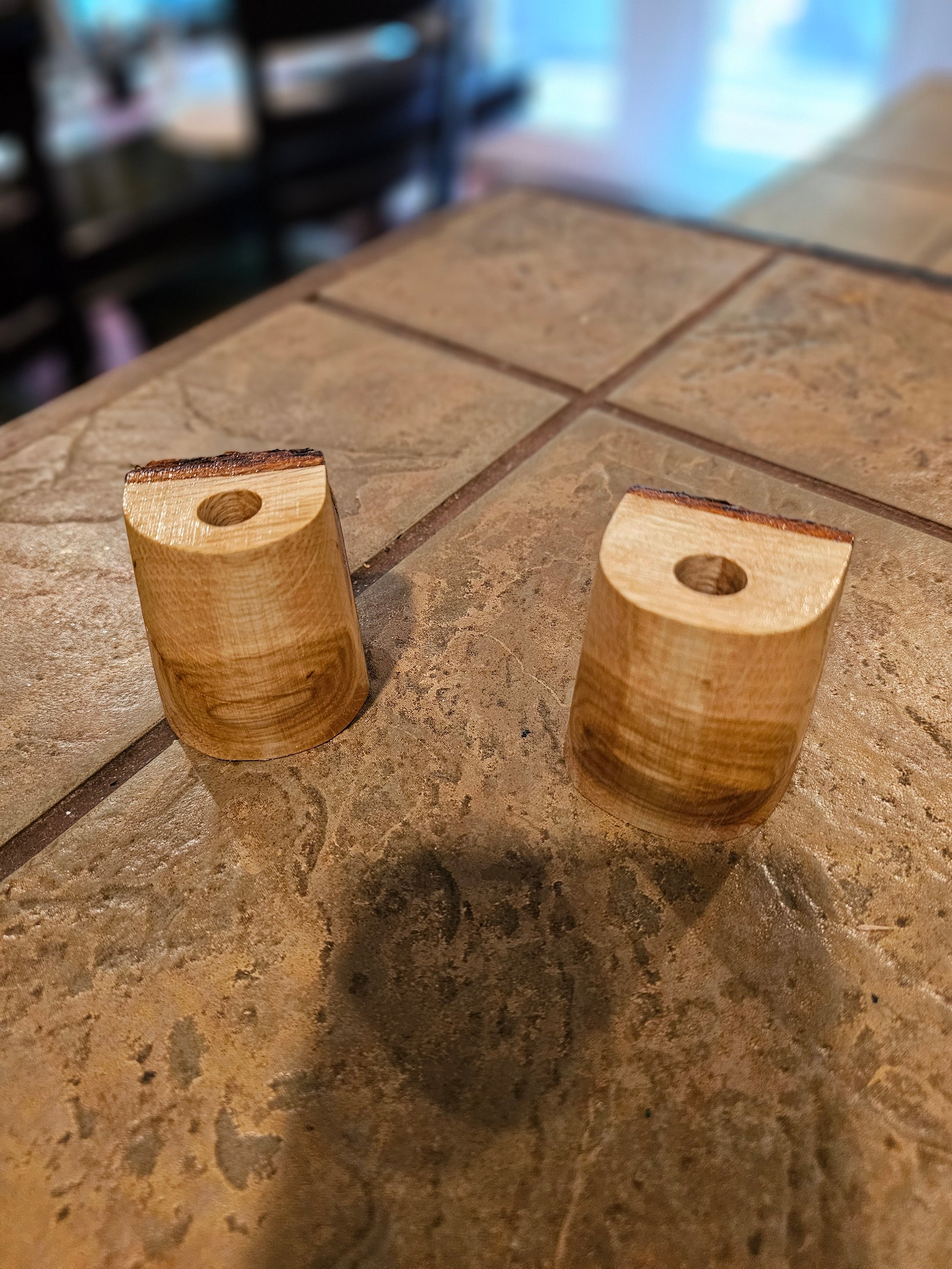 A rustic piece. Made from gathered oak limb. Comes in pairs.