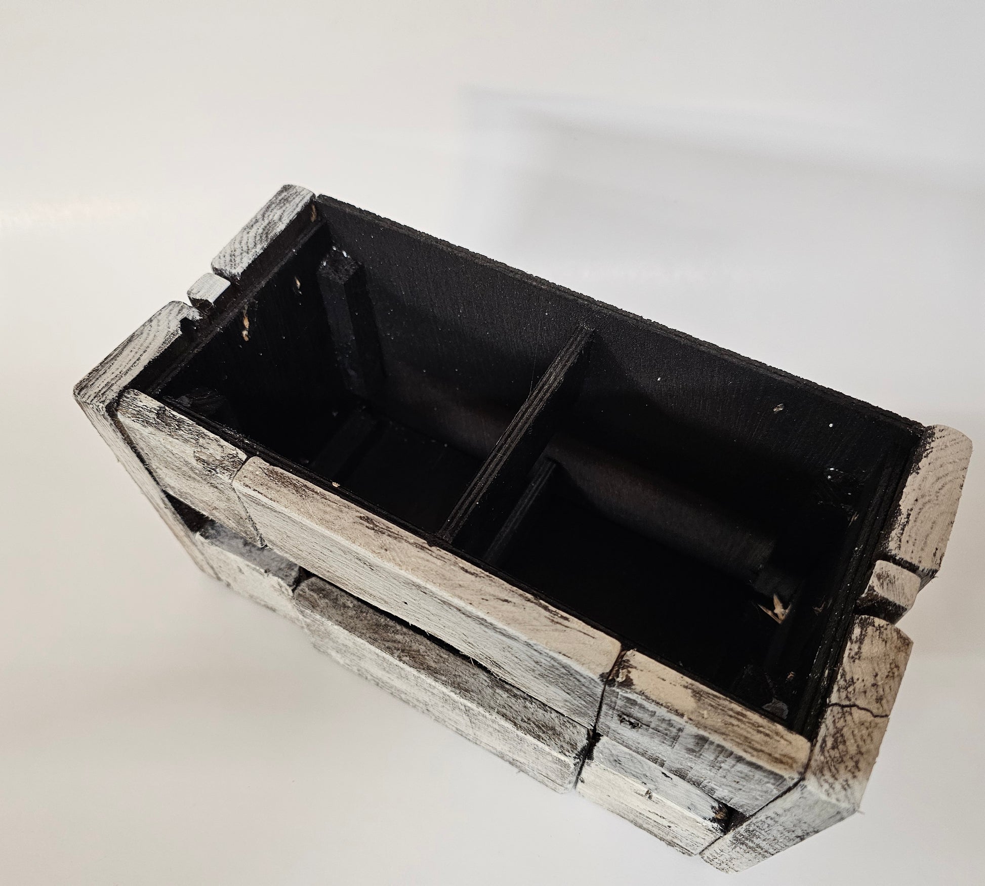 Made from reclaimed white oak. Measures approx. 9" long, 5" wide by 4" deep.