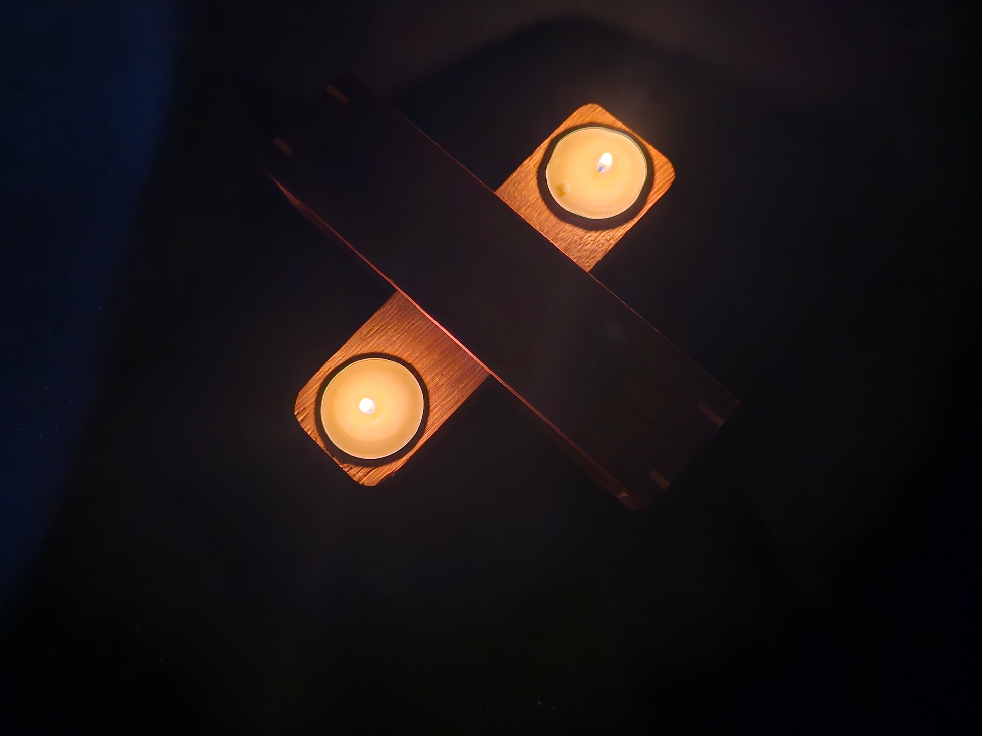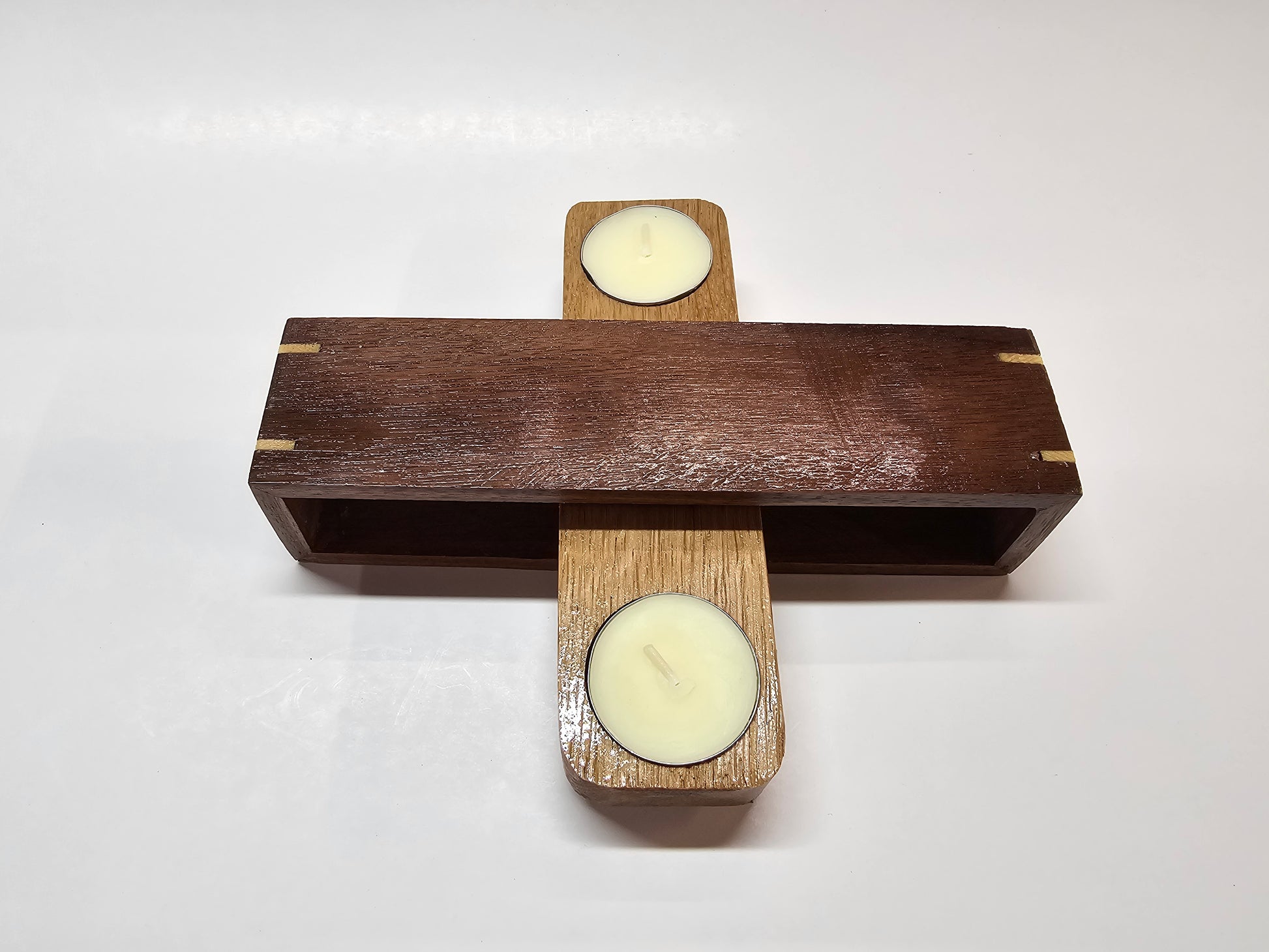 Walnut and oak, 2 candle tealight holder